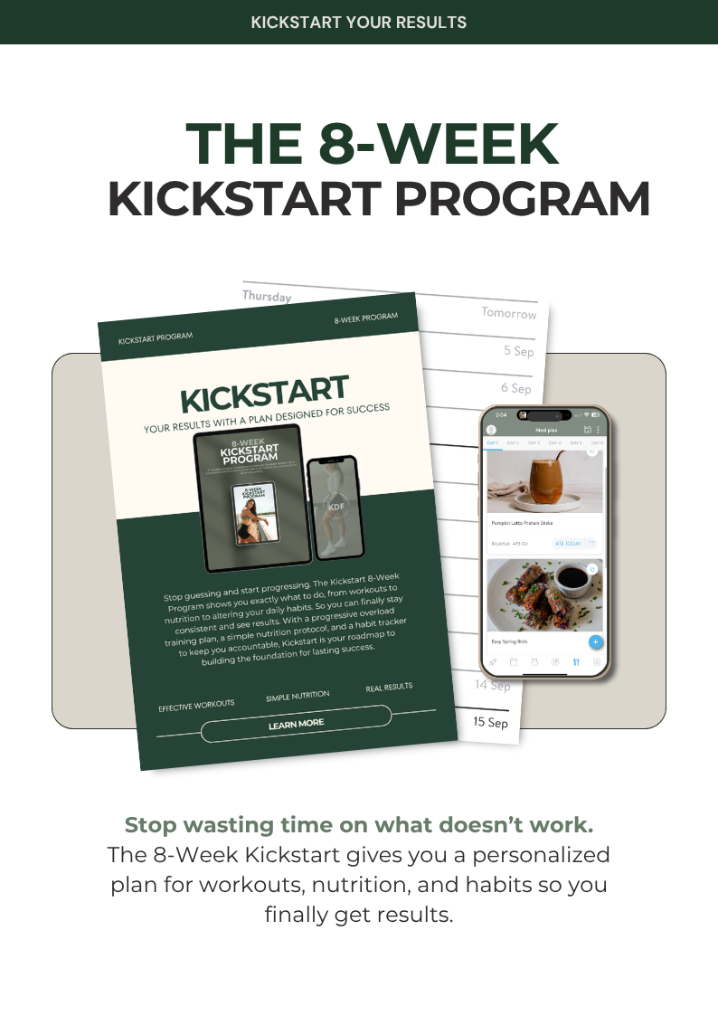 The 8-week Kickstart program gives you the structure to finally see results from personalized workouts, nutrition, and habits to reach your goals.