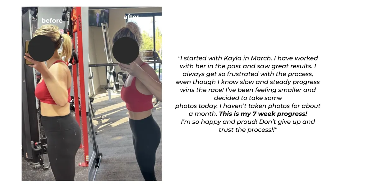Progress that’s tracked from every angle → You’ll see proof that it’s working — not just on the scale, but in your strength, confidence, habits, and how you feel day to day.